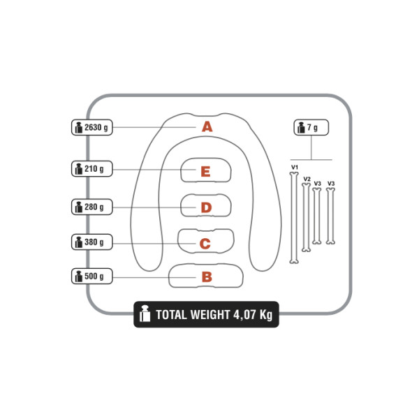 Vendu avec un poids total de 4 kg, son poids est facilement ajustable. Il se monte et se démonte facilement à l'aide de simples vis.