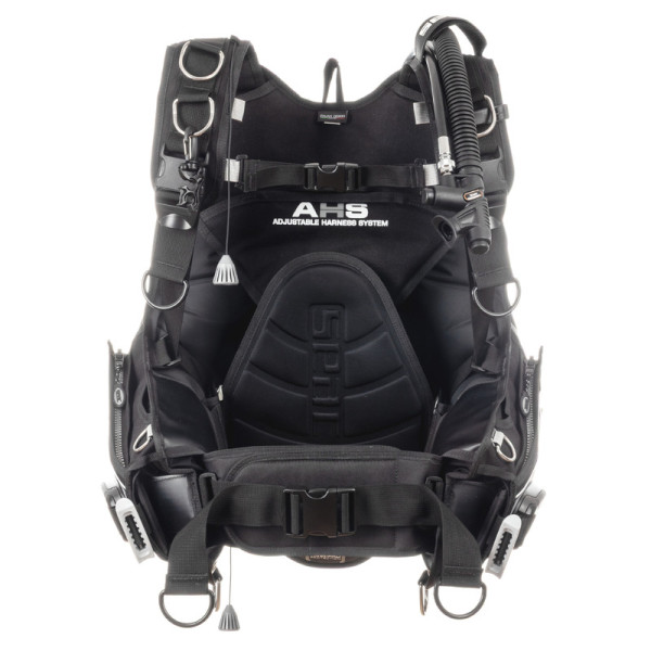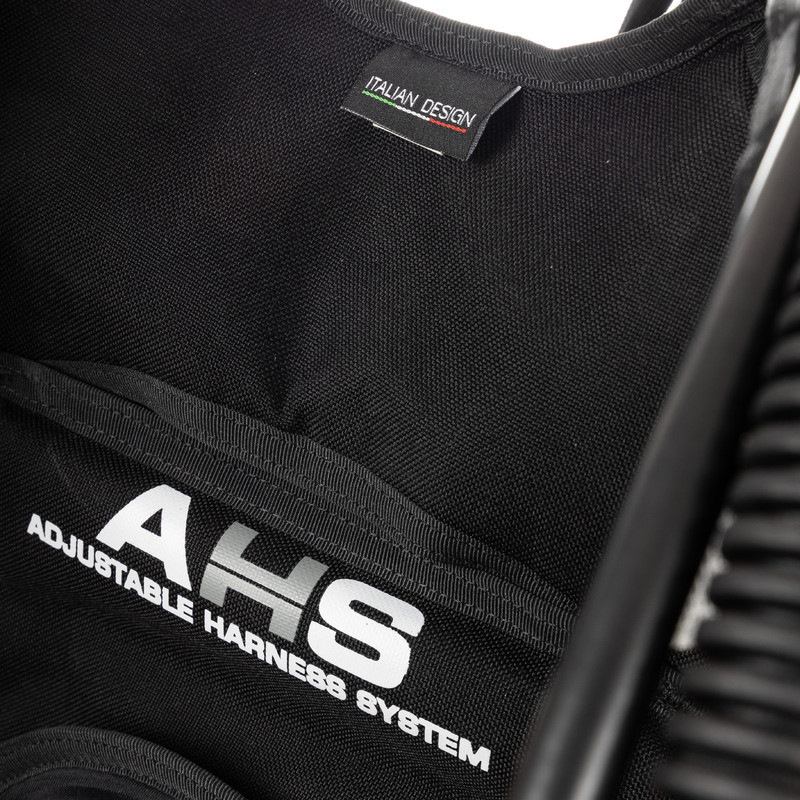Le système AHS (Adjustable Harness System) permet de régler le harnais avec précision, assurant un ajustement stable et confortable dans chaque configuration. Les vannes de surpression et de décharge manuelles ainsi que la vanne intégrée dans le groupe de commande permettent un contrôle rapide et sûr de l'assiette, même dans les plongées exigeantes.